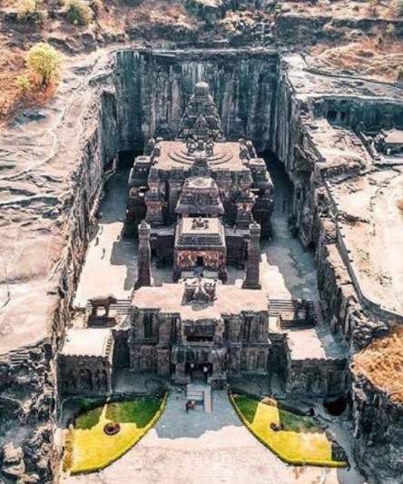 The Kailasa Temple at Ellora is carved out of a single rock and is considered one of the largest monolithic structures in the world. It is estimated that over 200,000 tons of rock were removed to create this architectural wonder!